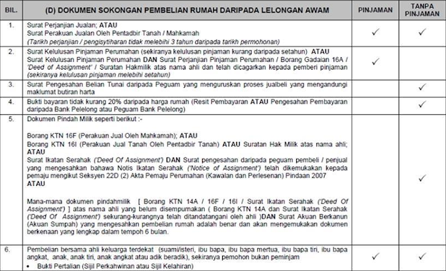1. Dokumen bukti pembelian atau pembinaan rumah kedua memenuhi syarat-syarat pengeluaran yang ditetapkan seperti yang dinyatakan dalam Dokumen Sokongan perkara (A) hingga (D) di atas