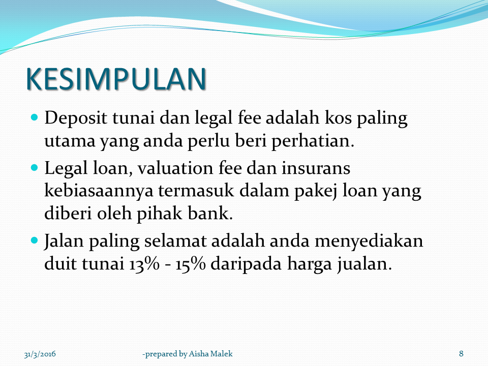 • Simpan duit deposit rumah sebanyak yang mungkin sejak di peringkat universiti. Contoh buat part time mengajar tuisyen, menjual tudung  atua trading saham. Jangan sesekali menyalahgunakan kewangan dari PTPTN ataupun biasiswa.